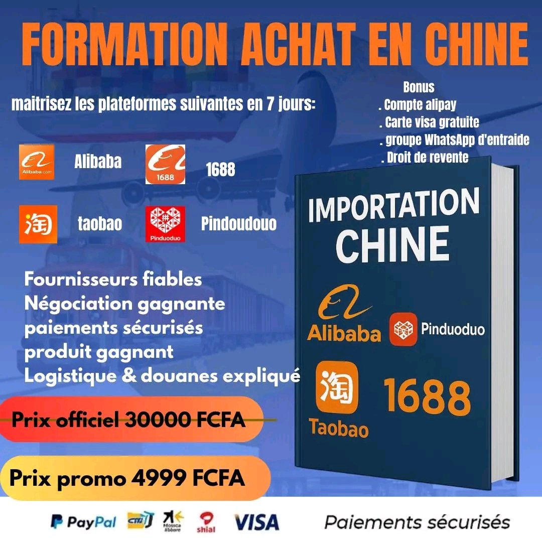 Ce guide explosif “Secrets d’Achat en Chine” vous révèle les coulisses d’Alibaba, la plateforme qui a transformé des milliers d’entrepreneurs en importateurs à succès. Découvrez comment dénicher des fournisseurs fiables, éviter les arnaques, négocier comme un pro et faire livrer vos produits jusqu’en Afrique — sans stress, sans surprise.